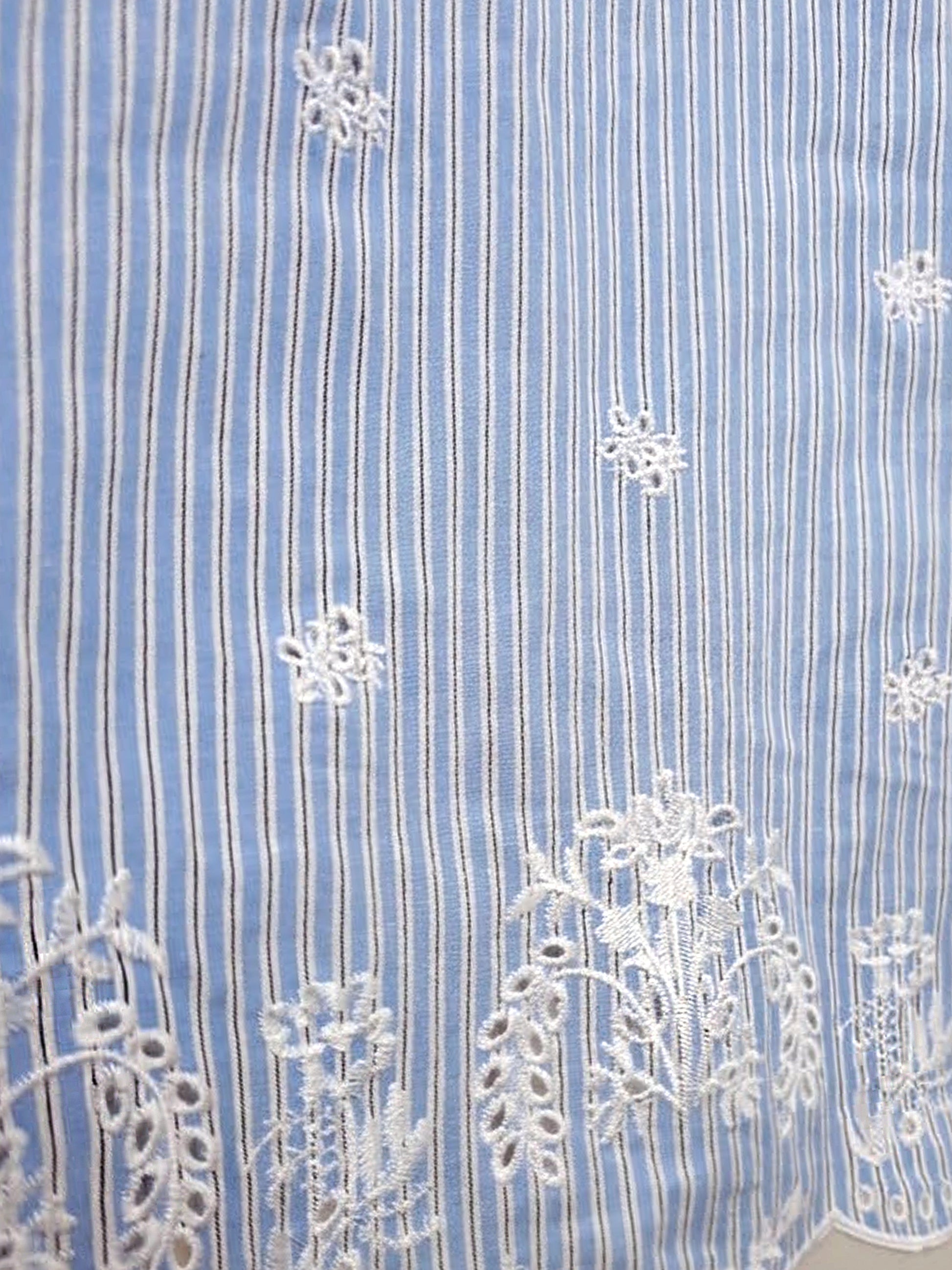 - Highlighted by romantic floral eyelet embroidery along the sleeves and scalloped hem
