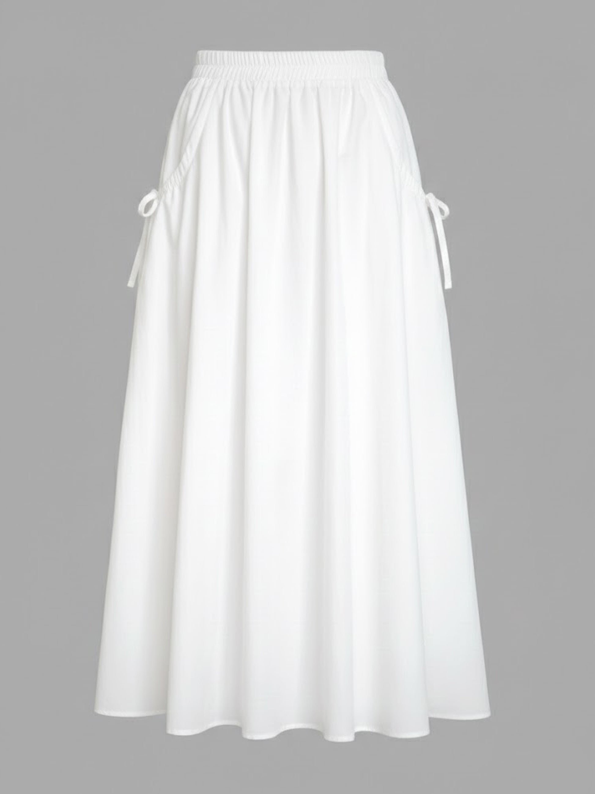 - Features a distinctive voluminous silhouette with charming side-ribbon tie details