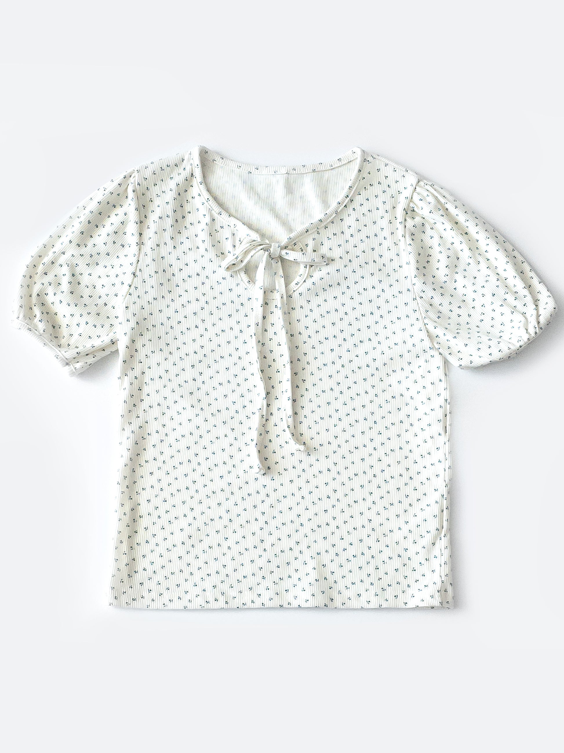 - Charming ditsy floral print top crafted from cotton corduroy with a front bow tie detail